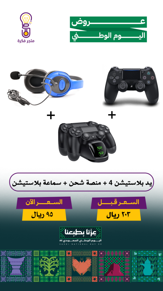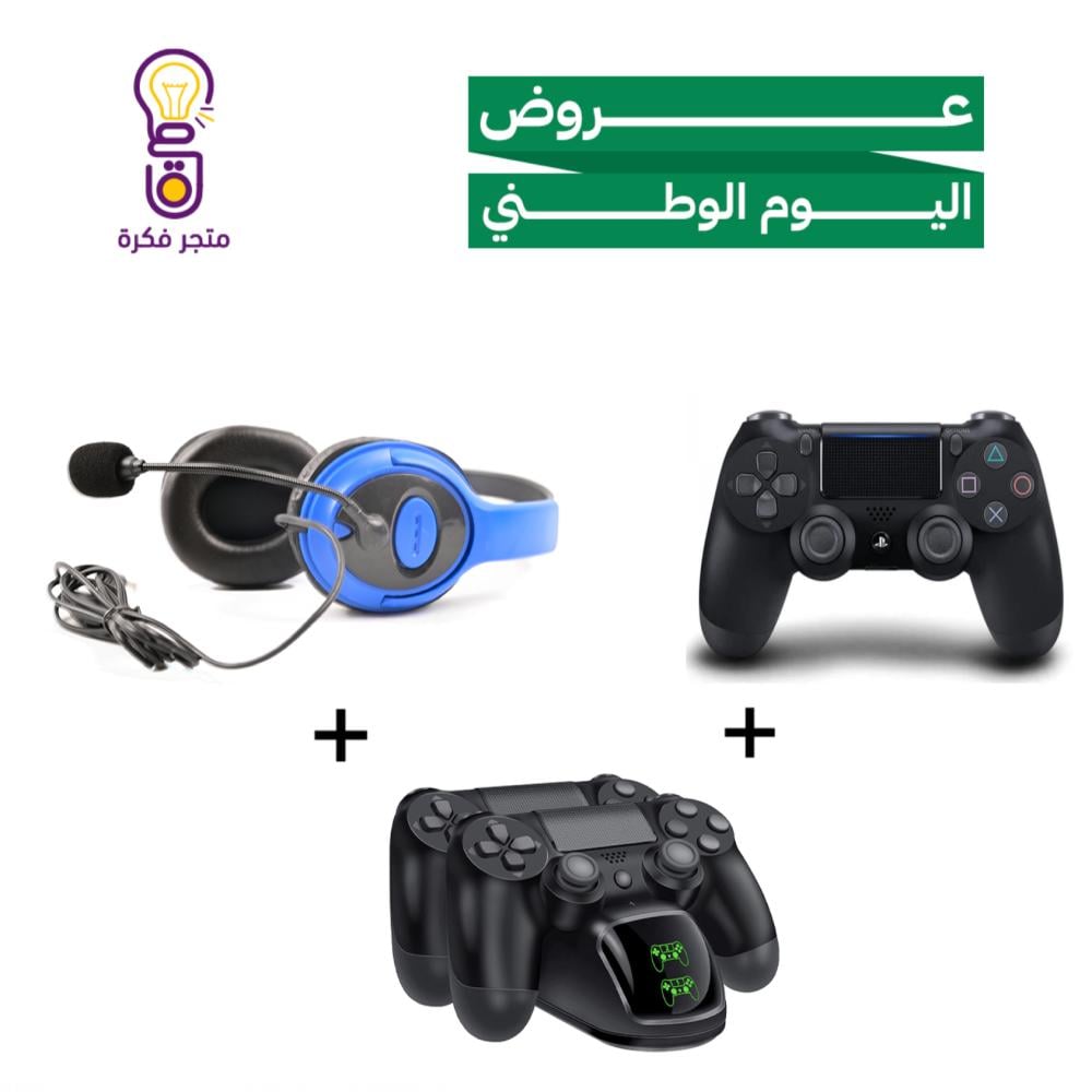يد بلاستيشن 4 + منصة شحن + سماعة بلاستيشن